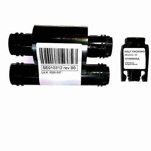 Evolis YMCKOKO 250 - Half Panel Print Ribbon is compatible with Primacy/Zenius ID Card Printer. The print ribbon comprises 250 prints per roll. It is an ideal option to personalize just one part of the card in colour. This half-panel print ribbon can perform even the black resin printing on both sides of the cards. Evolis print ribbon is compatible with materials like PVC, Composite PVC and PETF. It is mainly used for adhaar card printing purposes.
